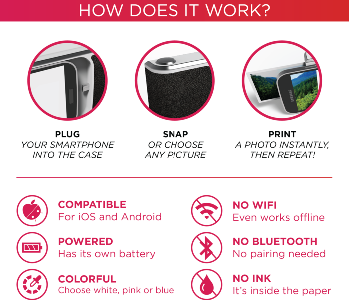 Plug your phone camera, and get prints in seconds and see your photos come to life through augmented reality!
